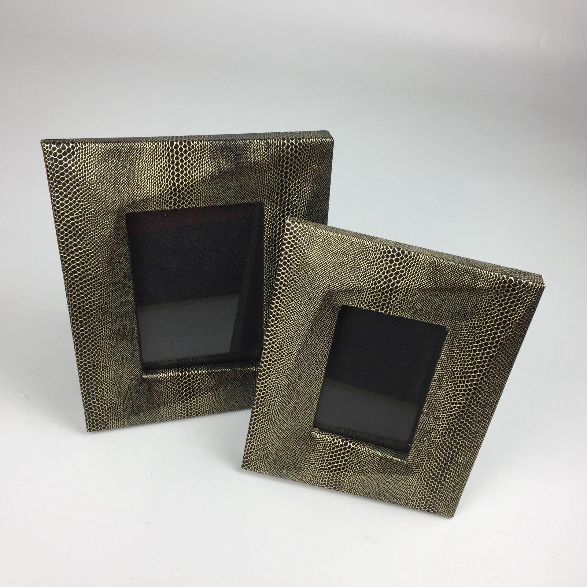 Parker picture frames with a gold faux lizard skin texture