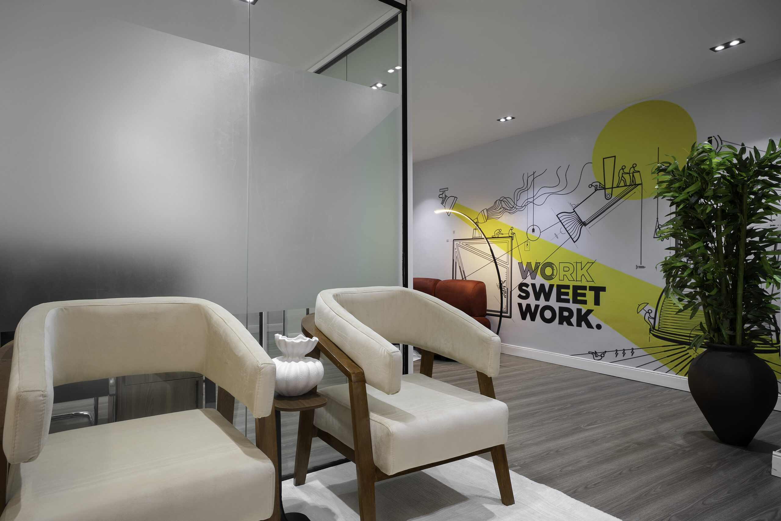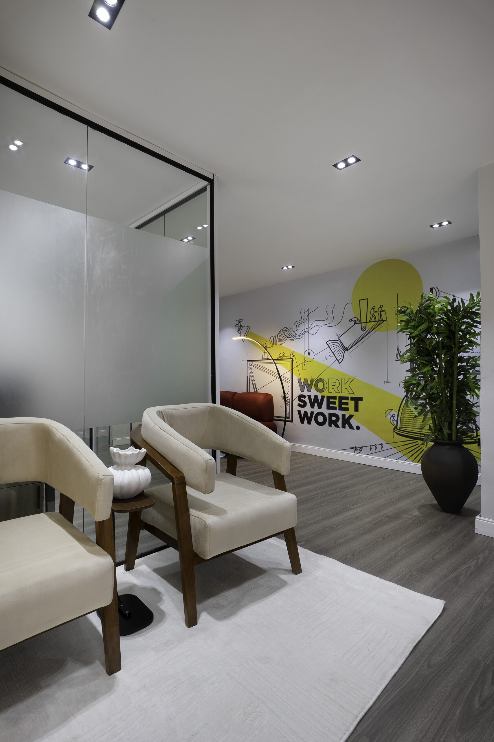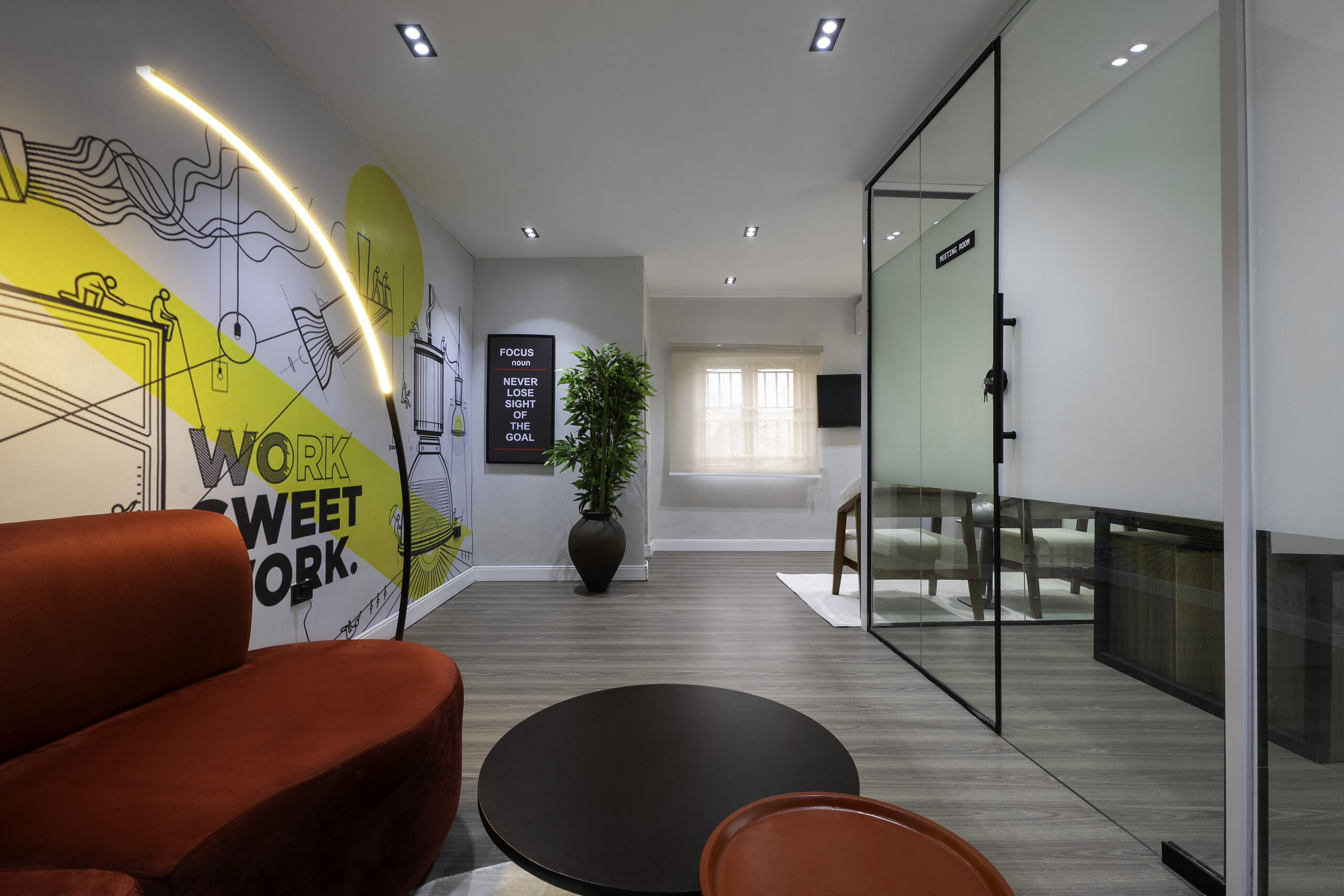 Every design choice was intentional. From the layout to the lighting, the interior was planned to encourage ease of movement, visual clarity, and productivity. Soft lighting balances the structured forms, while custom furniture adds both character and purpose to the space.